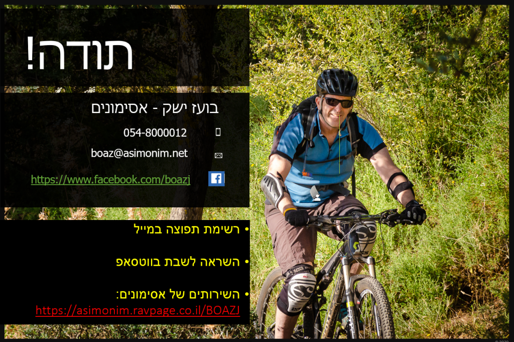 אשמח עד מאד למילוי המשוב האנונימי הזה על ידכם, תודה!